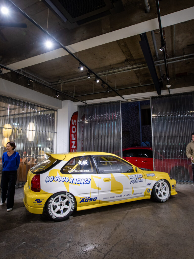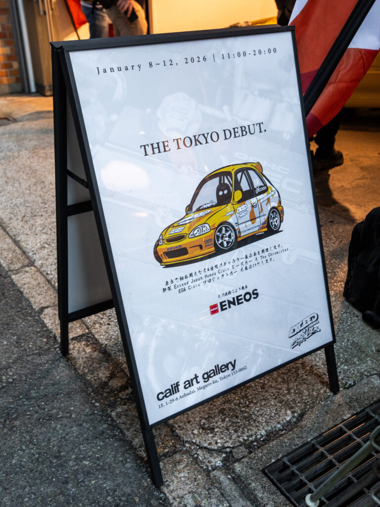 To kick things off, ENEOS sponsored a four-day pop-up event hosted by Joey Lee, mastermind behind The Chronicles, a popular JDM blogger/YouTuber, and his friend, Yasutaka Shimomukai of Exceed Japan, where they debuted their new Honda Civic EG and EK projects at calif art gallery in Nakameguro.