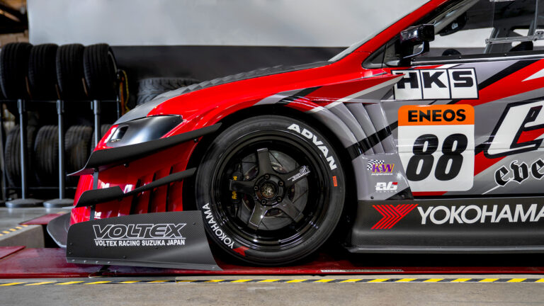Included in the conversion was the Voltex Time Attack Version front bumper, fiberglass over-fenders to provide additional track width, plus twin canards, front under-wing extension and side splitters. The dry carbon GT hood and 6.5ft-wide Type 13 GT wing are augmented by a full flat-bottomed underside to further optimize the aero efficiency at high speed.